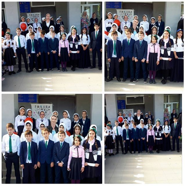 В МБОУ "СОШ №1 с. Шалажи" прошла торжественная линейка, посвященная Дню учителя, Дню рождения Р.А. Кадырова, Дню города и Дню молодежи.